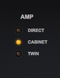 The switches in the Patch, “Electric Grand CP70 – Amp,” let you choose between DIRECT (the signal from the instrument’s 1/4” output), CABINET (the sound of a Twin Reverb amp’s speakers being mic’ed), and TWIN (the direct out of the amp, with no speakers).