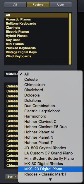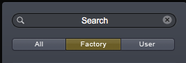 Select Factory to show only the Patches that come with Keyscape. Select User to show any Patches you have created and saved, or select All to display both Factory and User Patches.