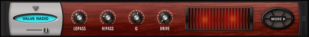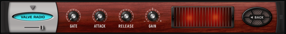 The VALVE RADIO FX unit is a unique device, which functions equally well as both a dual filter and a distortion device. The combination of these two effects can product many types of vintage radio and telephone speaker simulation effects. This unit also includes a simple noise gate on Page 2.