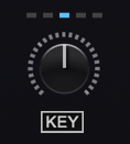 The small LED switches above the KEY knob are the Key Tracking Octave Switches. These switches transpose Filter Key Tracking up or down 2 octaves, the middle switch being the standard tracking. You will find these offsets most useful when using the Resonator and Metal Pipe filters.