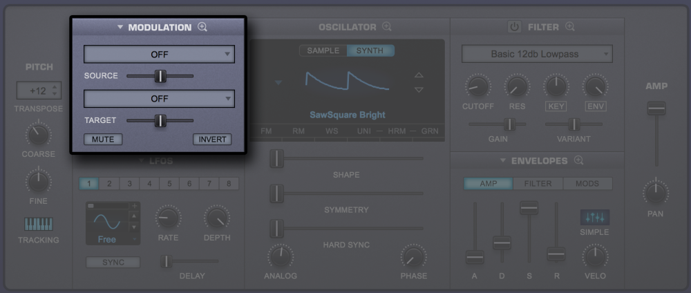 - Modulation routings can be defined in the MODULATION section of the Layer page.