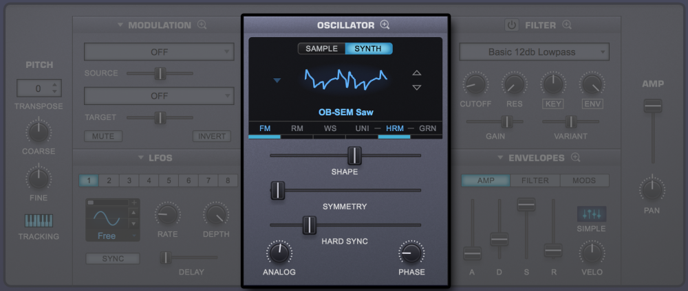 The STEAM engine goes far beyond traditional synthesizers by including a set of dedicated oscillators for Hard-Sync, Frequency Modulation, Ring Modulation, Unison, Harmonia, and Granular Synthesis controls. A single part can actually use up to 24 Oscillators per voice!