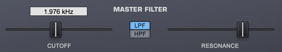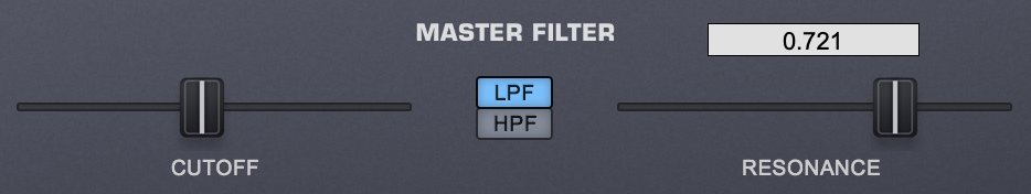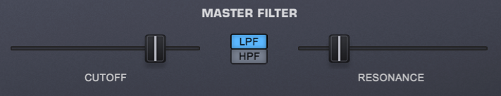 The MASTER FILTER has two available filter modes; LPF and HPF. The HPF (Highpass Filter) removes low frequencies from the sound, allowing high frequencies to “pass.” The LPF (Lowpass Filter) removes high frequencies from the sound, allowing low frequencies to “pass.”