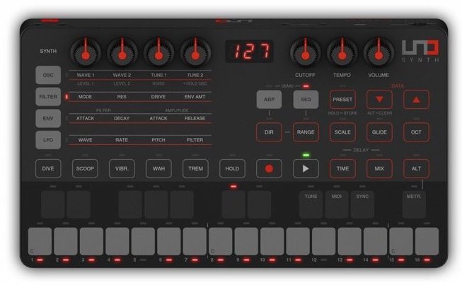 The IK Multimedia UNO Synth is a portable, monophonic analog synthesizer. It seems limited at first, and although it doesn’t have a dedicated control per function, it gives you more control over Omnisphere than meets the eye: Filters, Envelopes, Ambience, Layer levels, Arpeggiator, and modulation routings can help you customize patches easily, or even create them from scratch. It is USB/battery powered, so if you are looking for a controller with a small footprint at a low price, the UNO Synth is one worth considering.