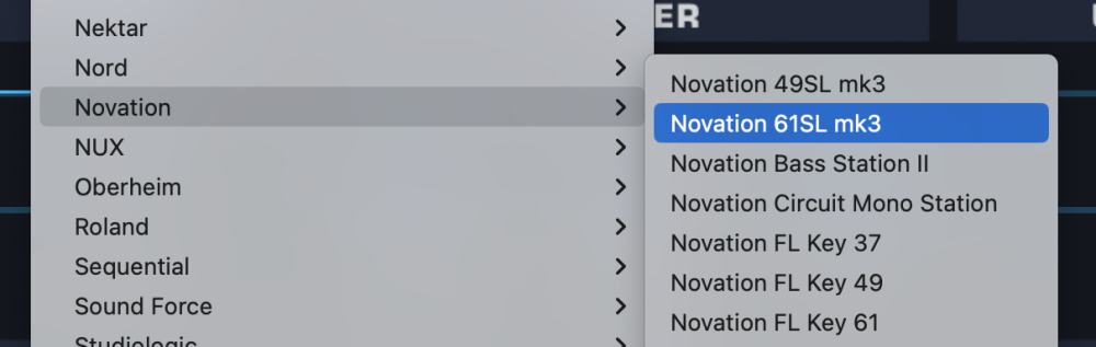 - From the drop-down menu, select “Novation > Novation 61SL mk3” to activate the 61SL mk3 hardware profile.