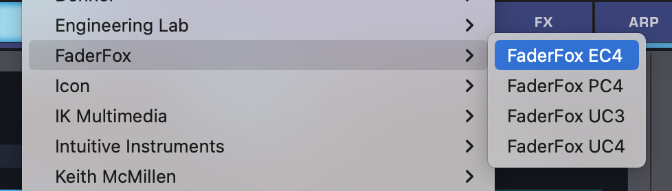 - From the drop-down menu, select “FaderFox > FaderFox EC4” to activate the EC4 Hardware Profile.