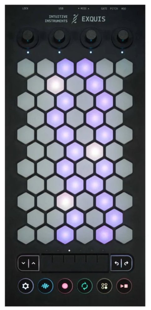 Omnisphere relies on the factory default settings of knobs on the Exquis.