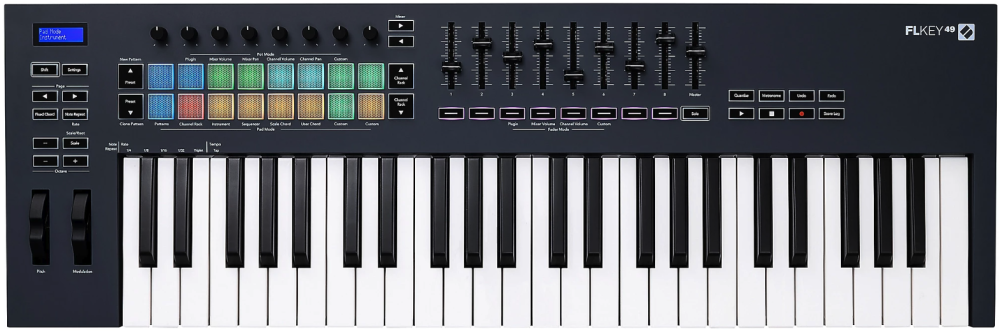 Omnisphere relies on the factory default settings of the “Custom Pot Mode 1” and “Custom Fader Mode 1” on the FL Key 49 for external control.