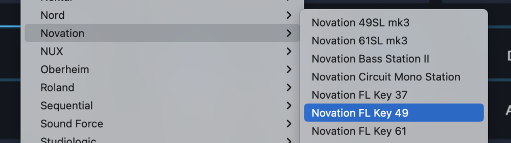 - From the drop-down menu, select “Novation > Novation FL Key 49” to activate the FL Key 49 hardware profile.