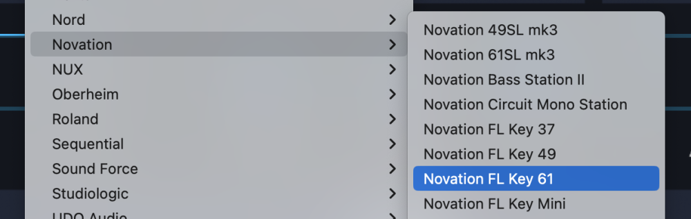 - From the drop-down menu, select “Novation > Novation FL Key 61” to activate the FL Key 61 hardware profile.