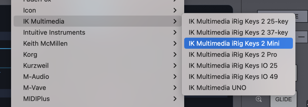 - From the drop-down menu, select “IK Multimedia > IK Multimedia iRig Keys 2 MIni” to activate the iRig Keys 2 hardware profile.