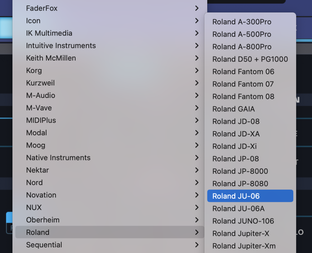From the drop-down menu, select “Roland>Roland JU-06” to activate that Hardware Profile.