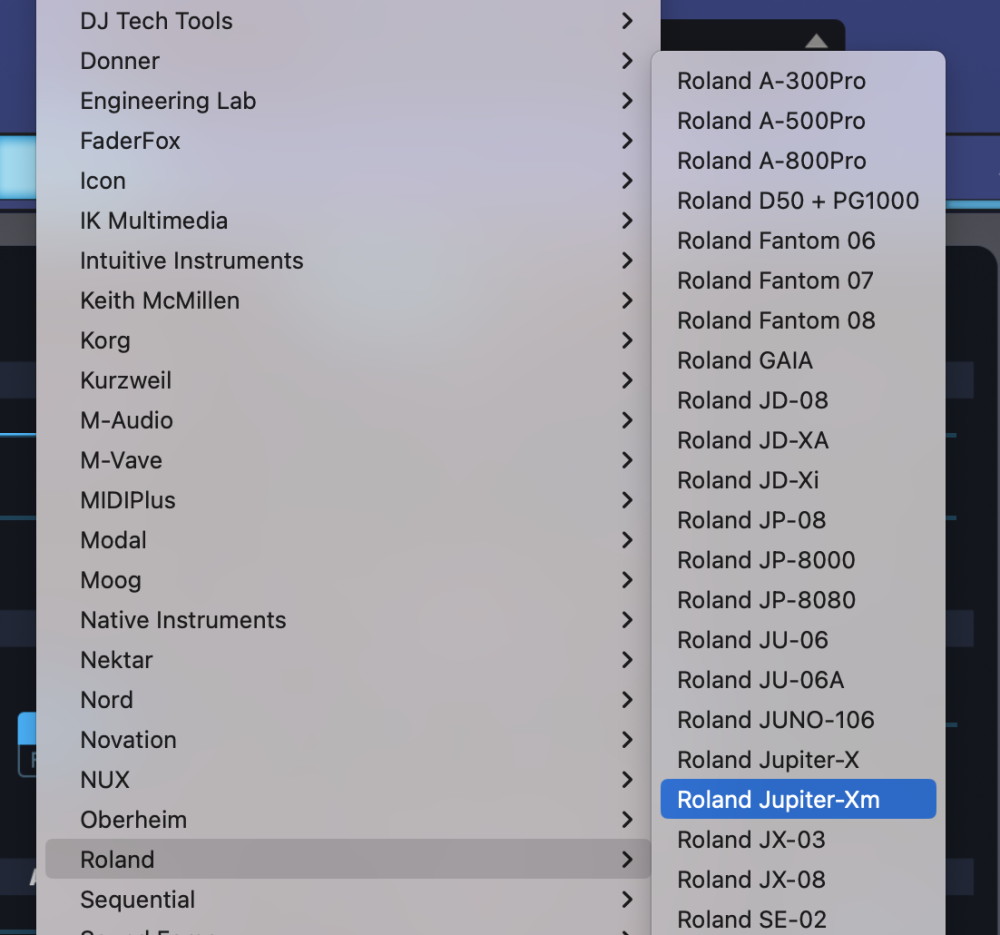 If the Jupiter-Xm is not on your list of MIDI inputs, access the Roland website to download and install the latest Jupiter-Xm MIDI Driver.