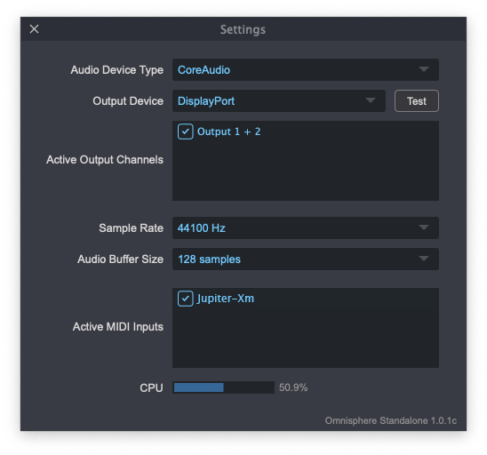 Check to see if the necessary USB driver has already been installed by opening up the Omnisphere Standalone (or your preferred DAW) and verify the Jupiter-Xm is on your list of MIDI inputs.