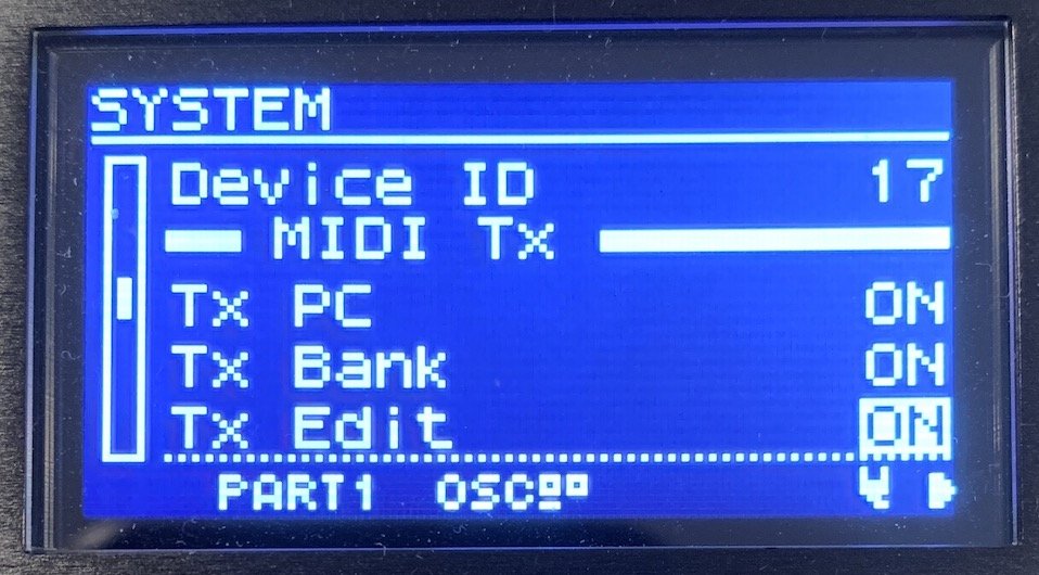 - Scroll down to select the page MIDI TX: TX Edit and make sure that’s set to “ON.”