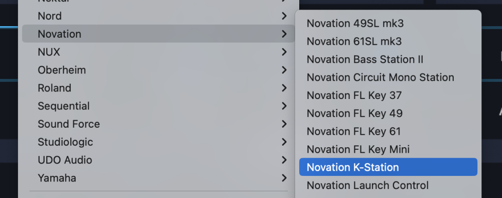 From the drop-down menu, select “Novation>Novation K-Station” to activate that Hardware Profile.