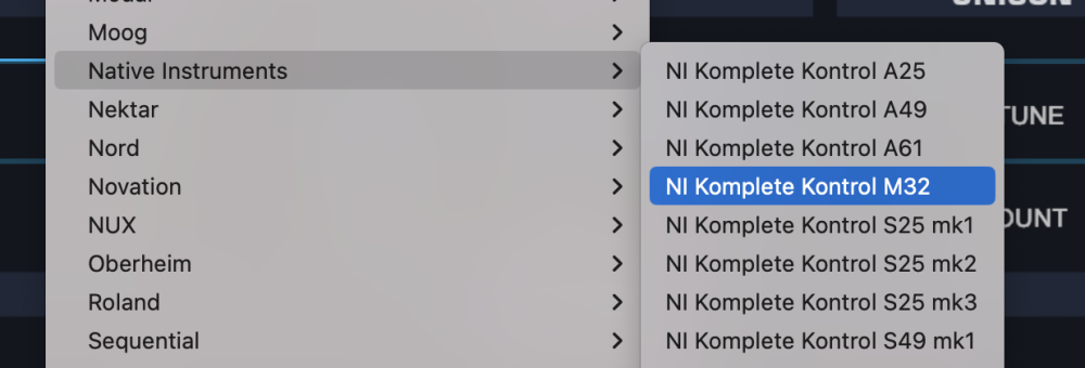 - From the drop-down menu, select “Native Instruments > NI Komplete Kontrol M32” to activate the Komplete Kontrol M32 hardware profile.