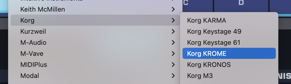 - From the drop-down menu, select “Korg > Korg KROME” to activate the KROME hardware profile.