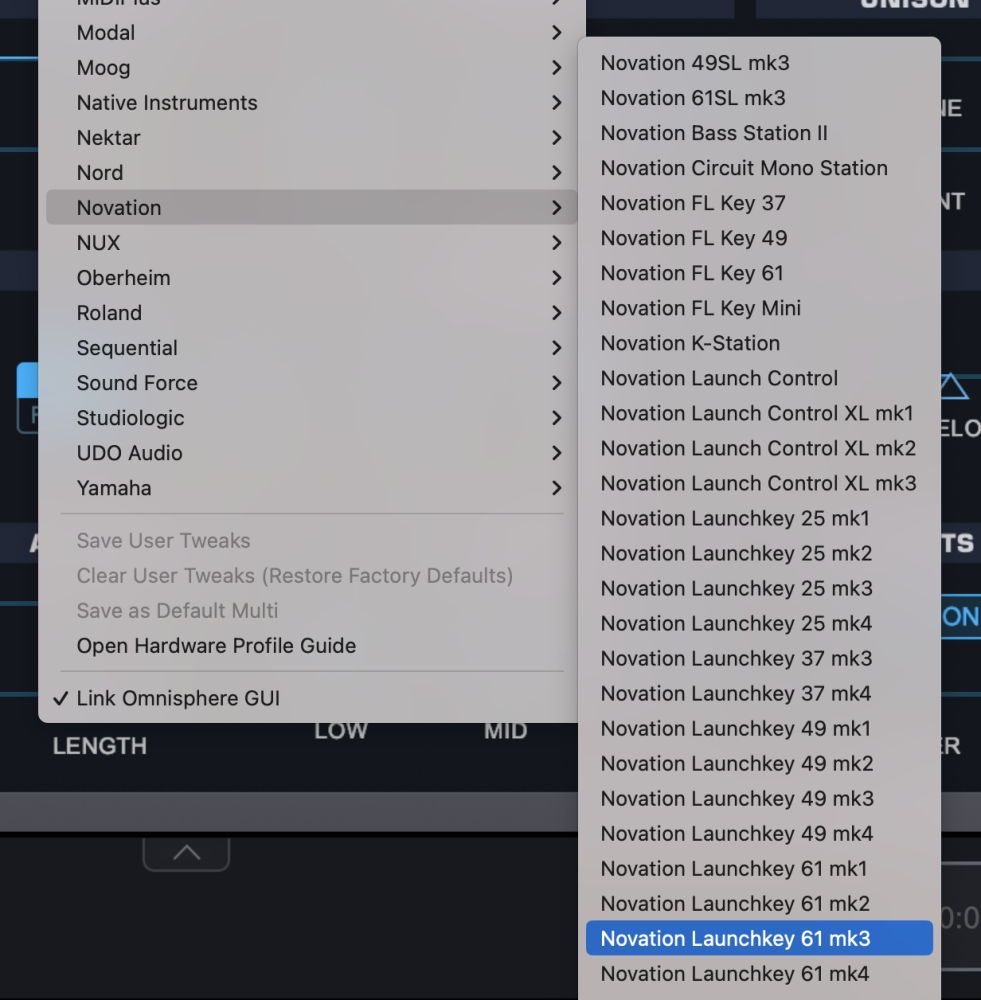 - Activate the Launchkey 61 mk3 Hardware Profile in Omnisphere 3 or later.