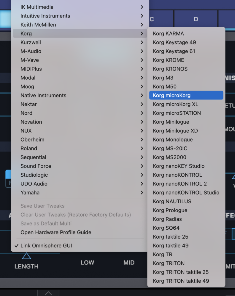 - Activate the microKORG Hardware Profile in Omnisphere 3 or later.