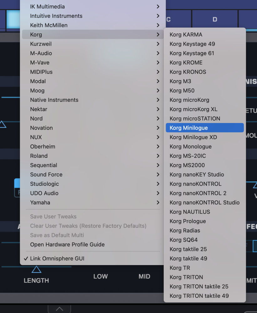 - Activate the Minilogue Hardware Profile in Omnisphere 3 or later.