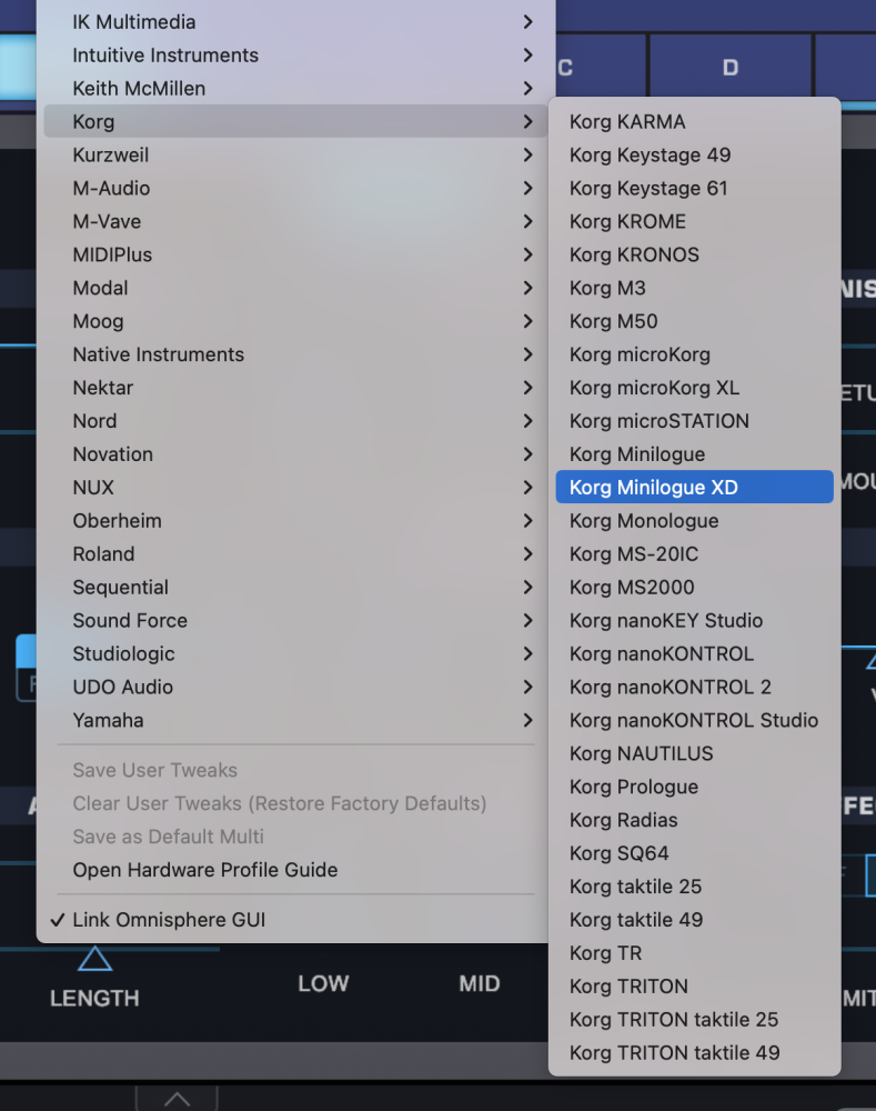 - Activate the Minilogue XD Hardware Profile in Omnisphere 3 or later.
