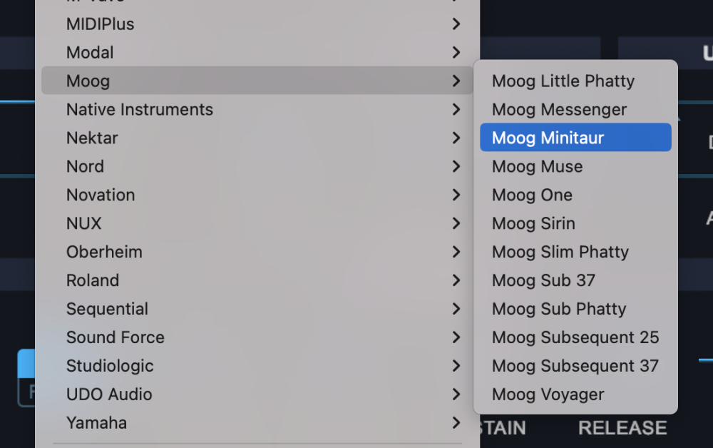 From the drop-down menu, select “Moog>Moog Minitaur” to activate that hardware profile.