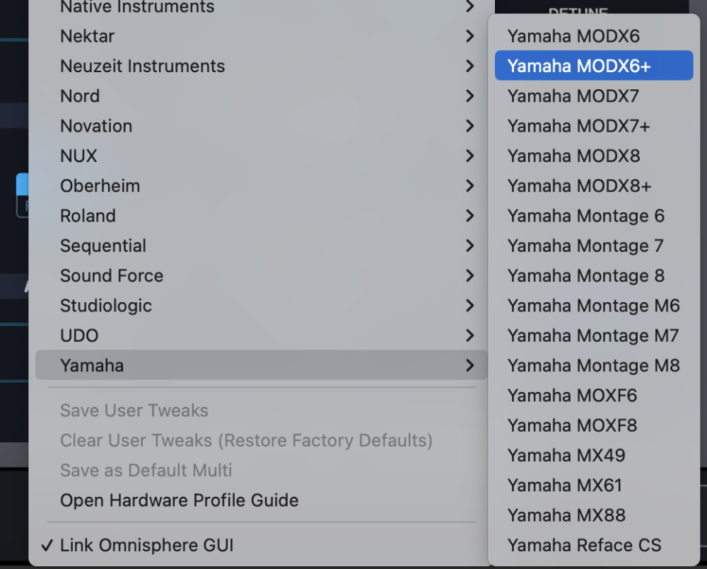 - From the drop-down menu, select “Yamaha > Yamaha MODX+”, and activate the MODX+ hardware profile that matches your keyboard.