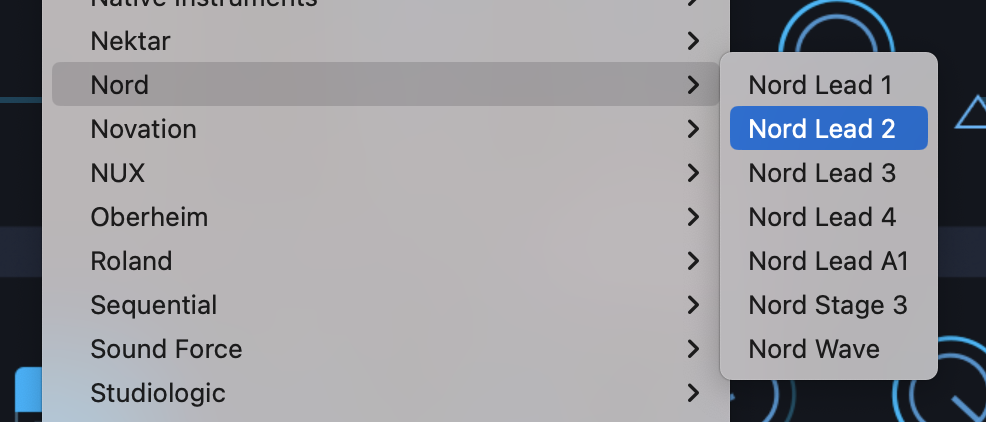 From the drop-down menu, select “Nord>Nord Lead 2” to activate that hardware profile.