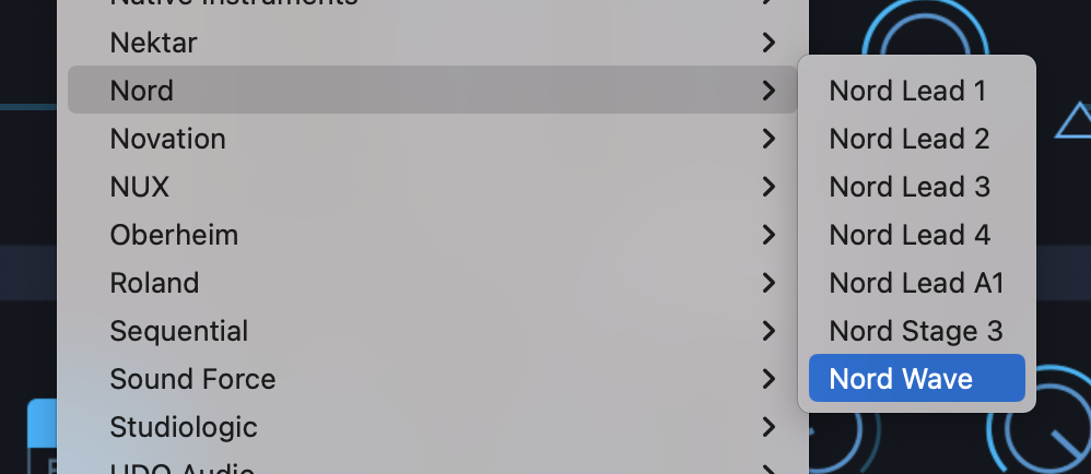 From the drop-down menu, select “Nord>Nord Wave 1” to activate that hardware profile.