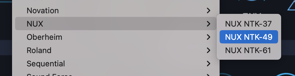 - From the drop-down menu, select “NUX > NUX NTK-49” to activate the NTK-49 hardware profile.
