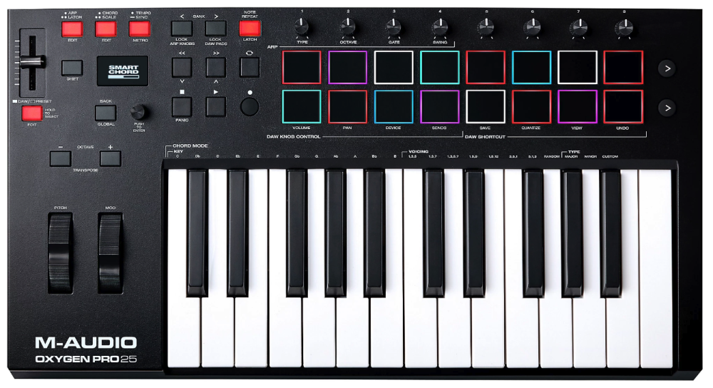 - Enable the Oxygen Pro 25 as a MIDI input device in the host software you’re using (DAW, Standalone, etc.).
