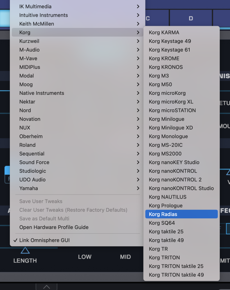 - Activate the Korg Radias Hardware Profile in Omnisphere 3 or later.