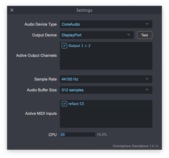 - If you are using the Omnisphere Standalone, make sure the MIDI output channel of the Reface CS matches the MIDI channel of the Omnisphere Part you want to control.