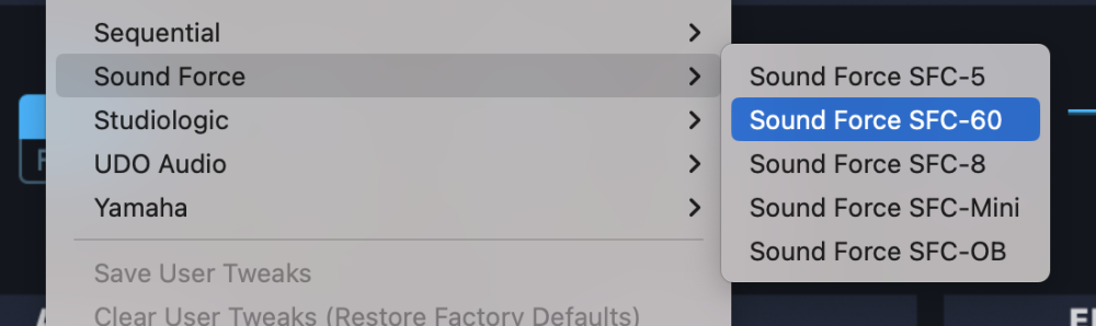 From the drop-down menu, select “Soundforce>Soundforce SFC-60” to activate that hardware profile.