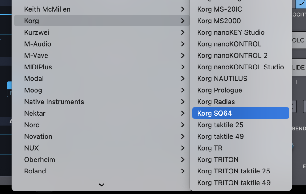 - From the drop-down menu, select “Korg > Korg SQ64” to activate the SQ64 hardware profile.