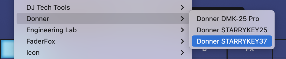 - From the drop-down menu, select “Donner > Donner STARRYKEY 37” to activate the STARRYKEY 37 Hardware Profile.