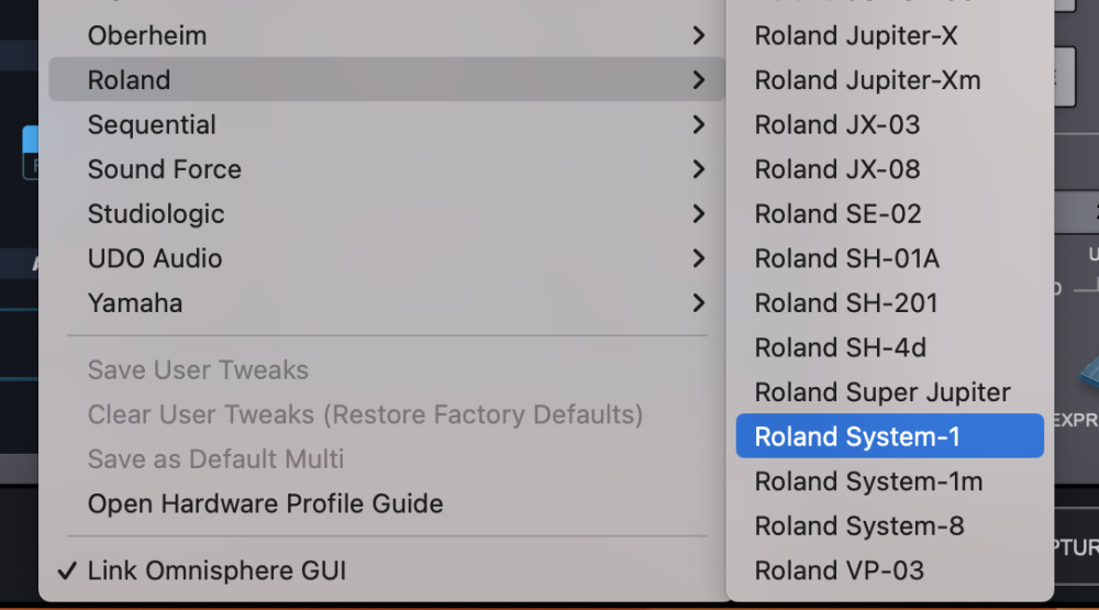 From the drop-down menu, select “Roland > Roland System-1” to activate that Hardware Profile.