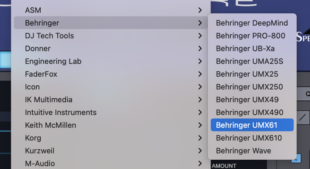 - From the drop-down menu, select “Behringer >Behringer UMX61” to activate the UMX61 Hardware Profile.