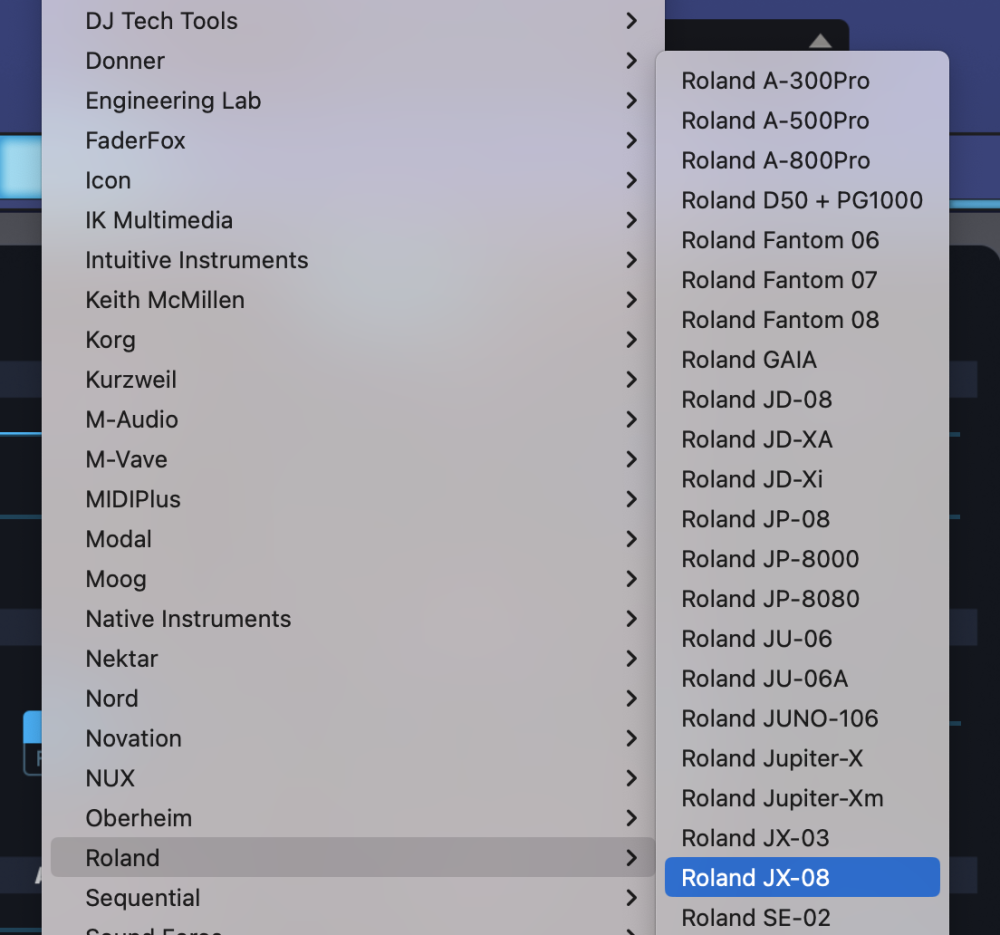 From the drop-down menu, select “Roland>Roland JX-08” to activate that Hardware Profile.