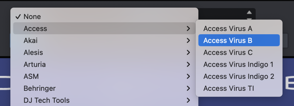 Open your host (DAW, Standalone, etc.) and make sure the MIDI interface to which you’ve connected the Access Virus B is enabled as a MIDI input device.