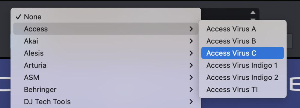 From the drop-down menu, select “Access>Access Virus C” to activate that hardware profile.