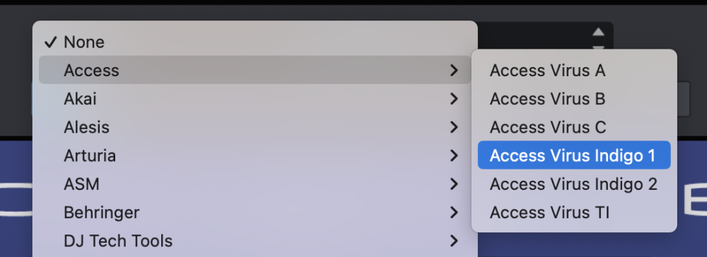 From the drop-down menu, select “Access>Access Virus Indigo 1” to activate that hardware profile.