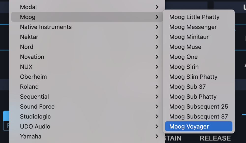 From the drop-down menu, select “Moog > Moog Voyager” to activate that hardware profile.