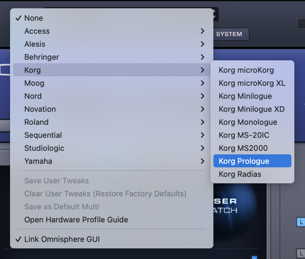 - Activate the Prologue Hardware Profile in Omnisphere 2.5 or higher.