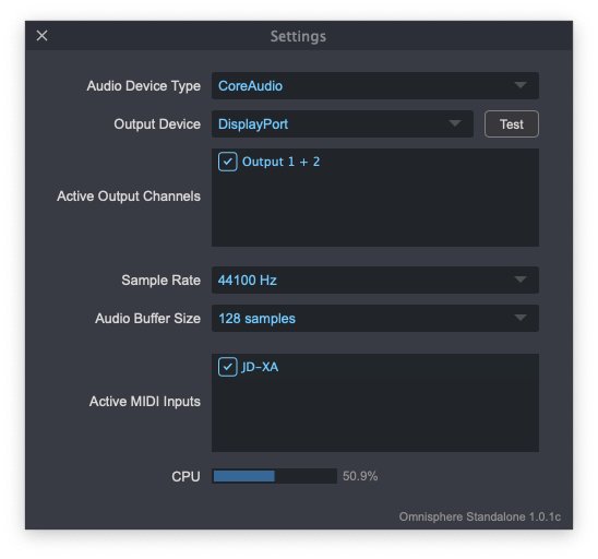 Check to see if the necessary USB driver has already been installed by opening up the Omnisphere Standalone (or your preferred DAW) and verify the JD-XA is on your list of MIDI inputs.