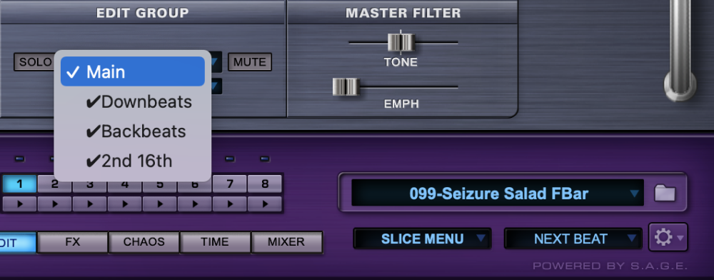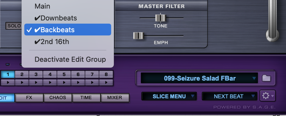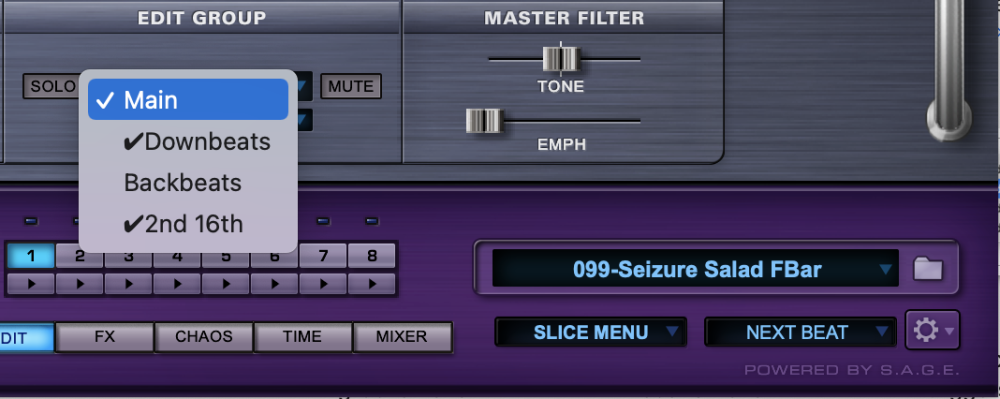 - The Slices inside the Edit Group are no longer processed by the Edit Group’s parameter settings and are processed by the “Main” Edit Group parameters and FX settings.
