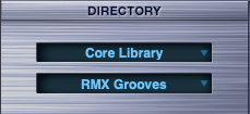 The DIRECTORY is the main navigation area of the Browser that lets you access the thousands of sounds and Grooves in your SAGE directory. There are two primary Directory menus: