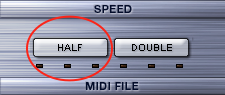 NOTE: If you convert a REX file with a time signature of a 6/8, 7/8, 11/8, 12/8, you may notice that it is playing back at double speed in RMX. This is due to the fact that most hosts use a “quarter note per minute” (QPM) clock instead of a “beats per minute” (BPM) clock. The solution is to either to change the clocking resolution of your host to eighth based divisions (which may or may not be possible), or simply press the HALF button in the browser before using the MIDI file.