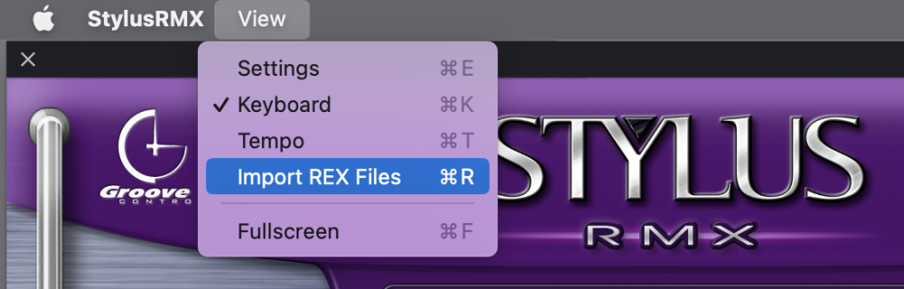 From the View Menu in the upper left, select “Import REX Files.”